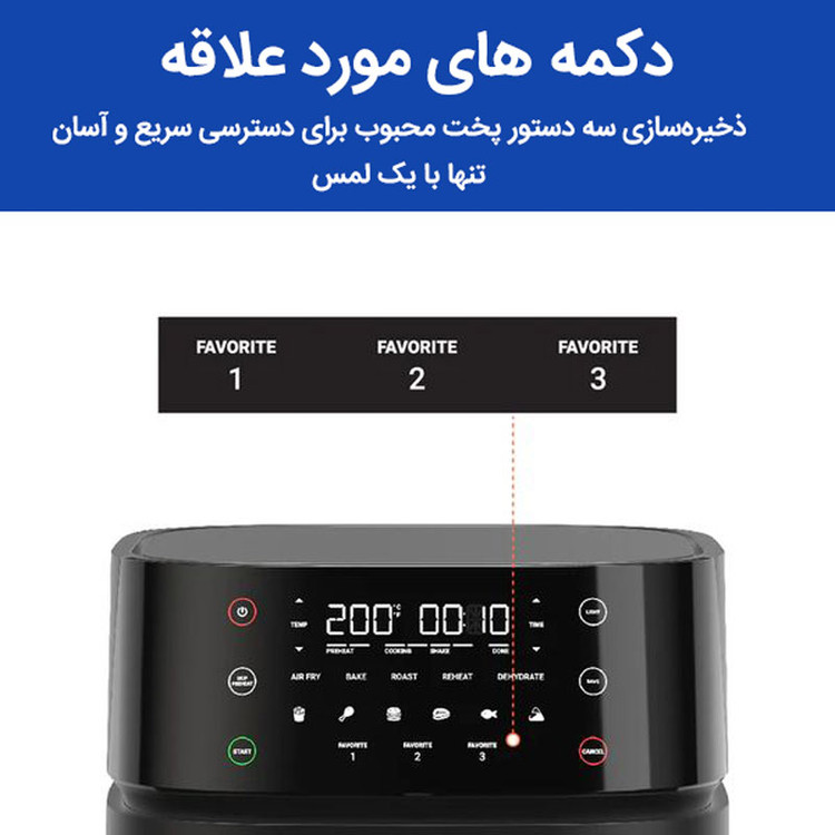 دارای هشدار Shake برای تکان دادن مواد غذایی در حین پخت