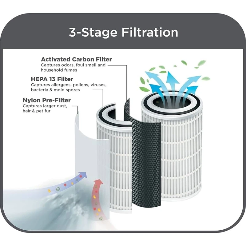 مجموعه فیلتر چند مرحله ای که ذرات معلق، دود، بو و ترکیبات آلی فرار را به خوبی حذف میکند