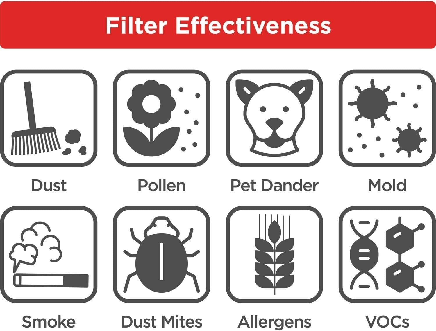 تصفیه دقیق ذرات بسیار ریز تا حداقل ۰.۳ میکرون با کارایی بیش از ۹۹/۹۷ درصد، حذف کامل آلرژن ها، گرده ها، دود، سیگار و ترکیبات آلی فرار