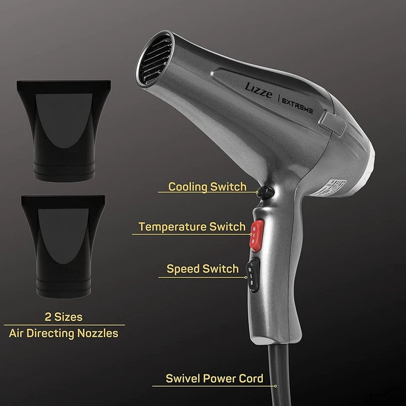 سشوار لیز اکستریم Lizze Extreme از محصولات محبوب این کمپانی با تاییدیه استاندارد اروپا CE می باشد.که یک سشوار بسیار پرقدرت با موتور AC و توان واقعی 2400 وات هست که تایم خشک کردن موها رو نصف می کند لذا هم در زمان صرفه جویی می شود هم سلامت مو را حفظ می کند.طوریکه موفق به کسب استاندارد اروپایی ضمانت سلامت مو شده است.این سشوار کاملآ حرفه ای طراحی شده است لذا نه تنها برای استفاده شخصی بلکه برای استفاده سالنی انتخاب بسیار مناسبی است.سشوار لیز اکستریم مجهز به دو حالت تنظیم سرعت و دو حالت تنظیم دما هست که می توانید با توجه به جنس و مدل موهایتان دمای مناسب را انتخاب کنید.همچنین دکمه کول شات (باد سرد سریع) تعبیه شده روی دسته سشوار کمک می کند بعد از اتمام حالت دهی موها به منظور تثبیت و دوام حالت مو از آن بهره ببرید.جهت حفظ دوام و عملکرد بهتر سشوار لیز اکستریم وقتی درجه دمای المنت حرارتی آن از یک گستره ای فراتر برود دستگاه به صورت خودکار خاموش خواهد شد از طرفی فیلتر این دستگاه قابل جدا شدن و شستشو هست لذا در صورت وجود گرد و غبار و پرز برای حفظ قدرت موتور و پرتاب باد بهتر به راحتی می توانید فیلتر را باز کرده و تمیز کنید. جهت کنترل هوای خروجی به همراه سشوار لیز اکستریم Lizze Extreme دو متمرکز کننده هوا موجود است لازم به ذکر است این محصول دارای بدنه بسیار باکیفیت بوده که در برابر حرارت بالا مقاوم بوده همچنین دارای کابل بلند و ضخیم 3 متری جهت آزادی عمل بهتر هست و اینکه سشوار لیز اکستریم قابل کارکرد در محدوده ولتاژ جهانی 220 تا 240 ولت هست