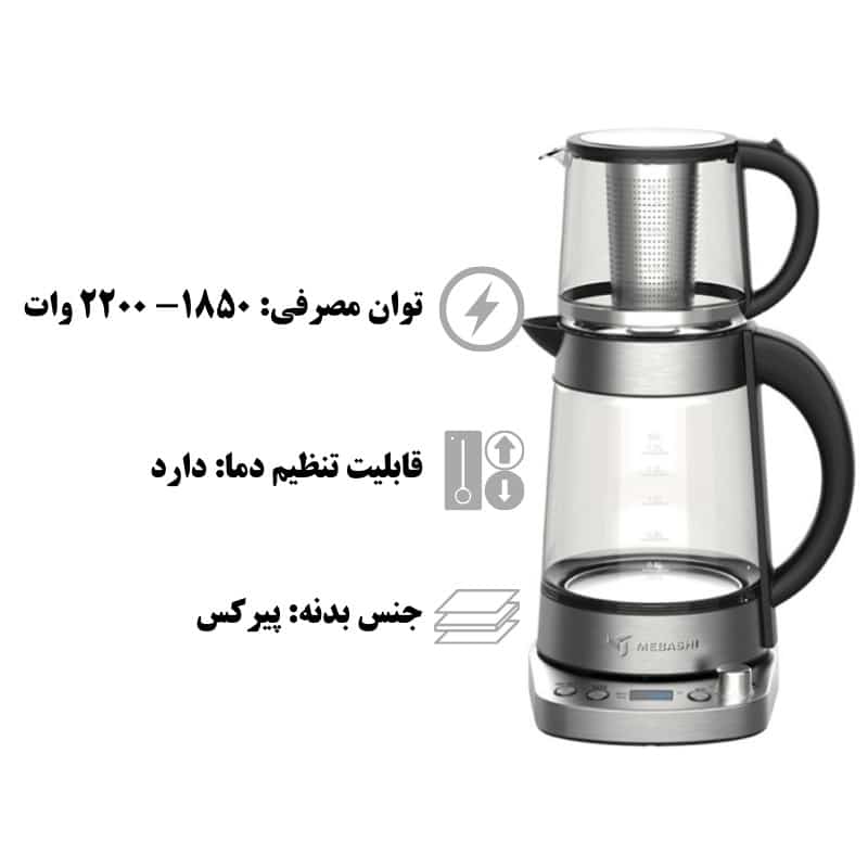 کشور سازنده چین تحت لیسانس ژاپن ظرفیت کتری1.7 لیتر حجم قوری1 لیتر ترموستات استریکس Strix قابلیت چرخش 360 درجه روی پایه خاموش شدن خودکار